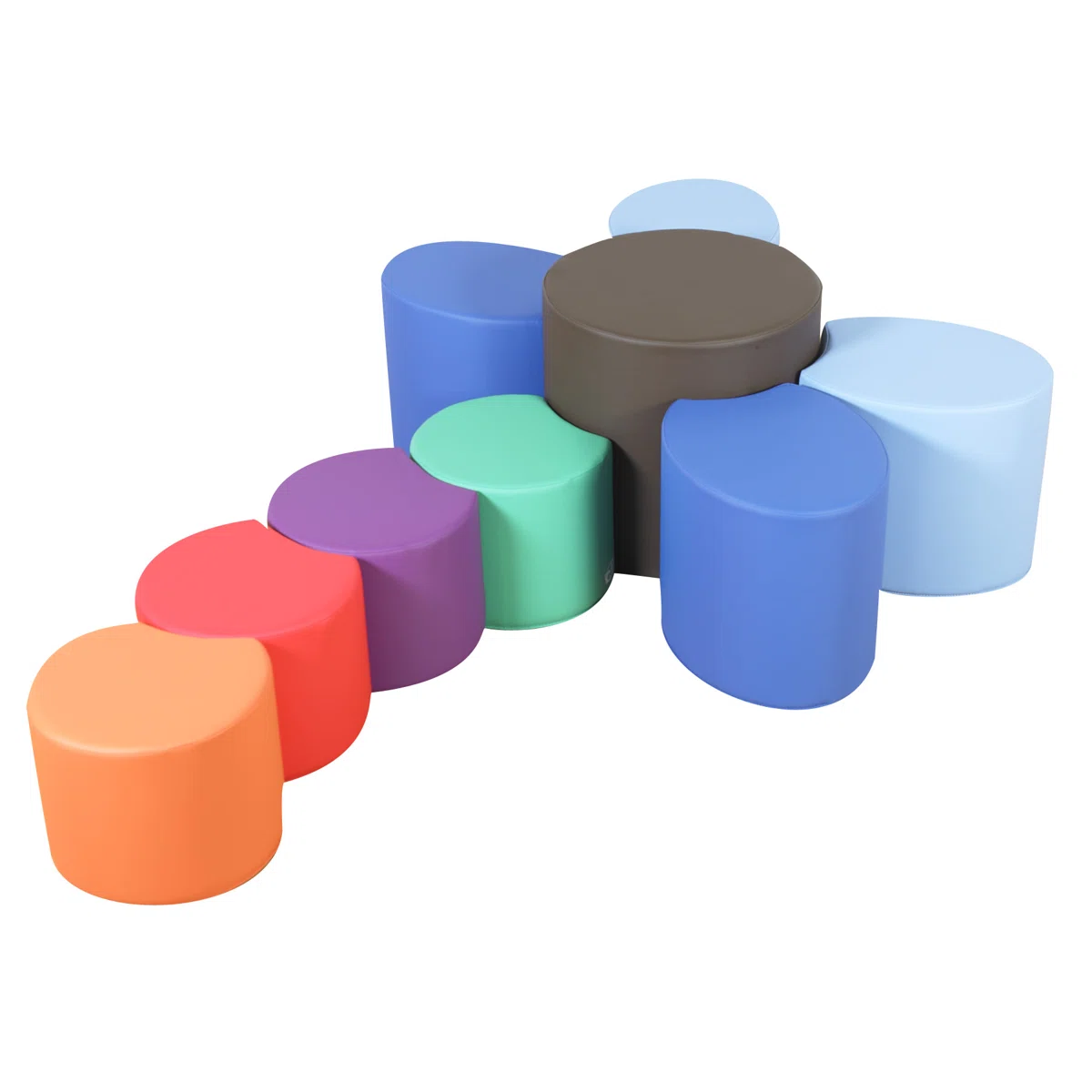 Each piece is designed to interlock or function separately, providing flexible seating solutions for different group sizes or activities.