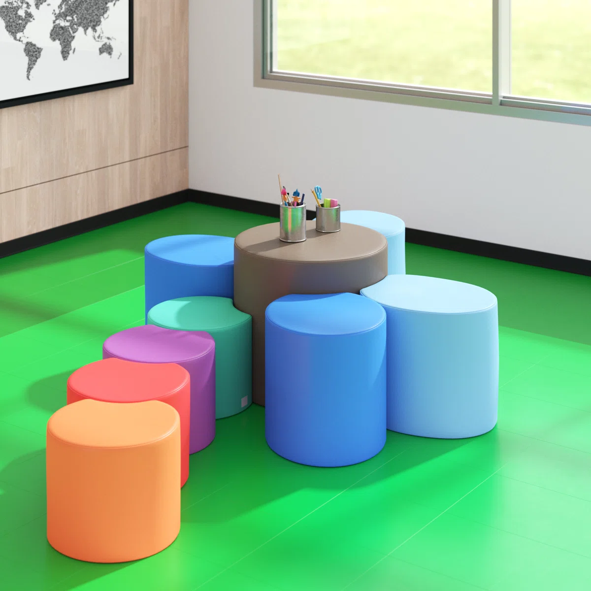 Crafted with high-density foam and covered in vegan leather, this seating set is built to withstand high-traffic environments. The water-resistant material is easy to wipe clean, making it a practical choice for preschools, nurseries, or homes with active children. It’s available in a range of bold colors like purple, sky blue, red, green, orange, and black—adding both function and flair to your space.