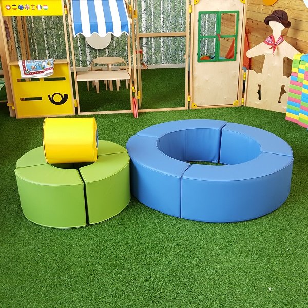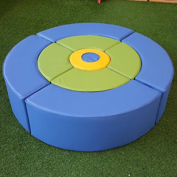 Each curved seat is made from high-quality, child-safe foam and finished in a durable vinyl covering that’s soft to the touch and easy to clean. Designed in a circular bullseye style, the pieces can be arranged in a variety of ways — from a cozy semi-circle for storytelling to an open creative layout that encourages imaginative building and play.